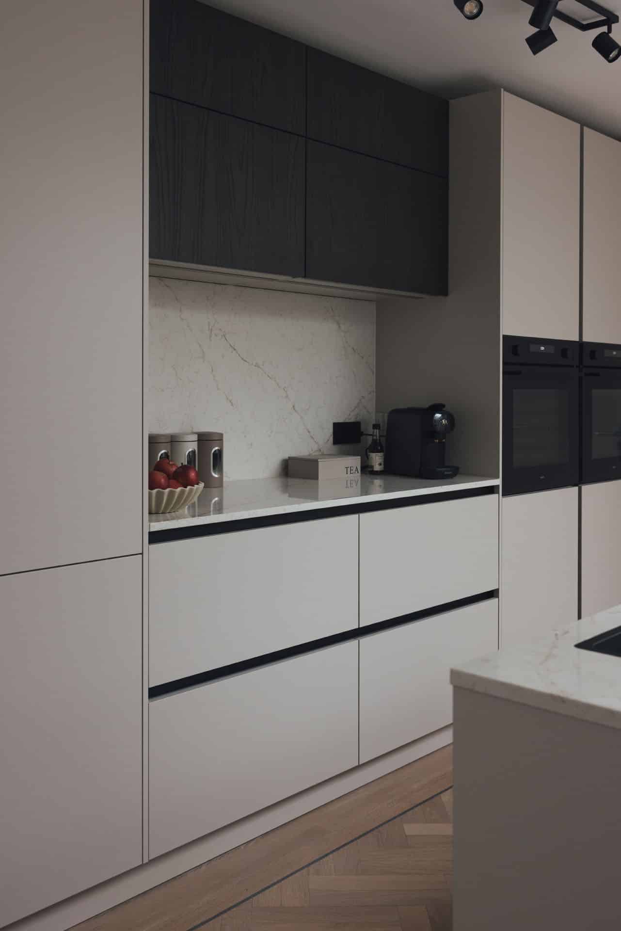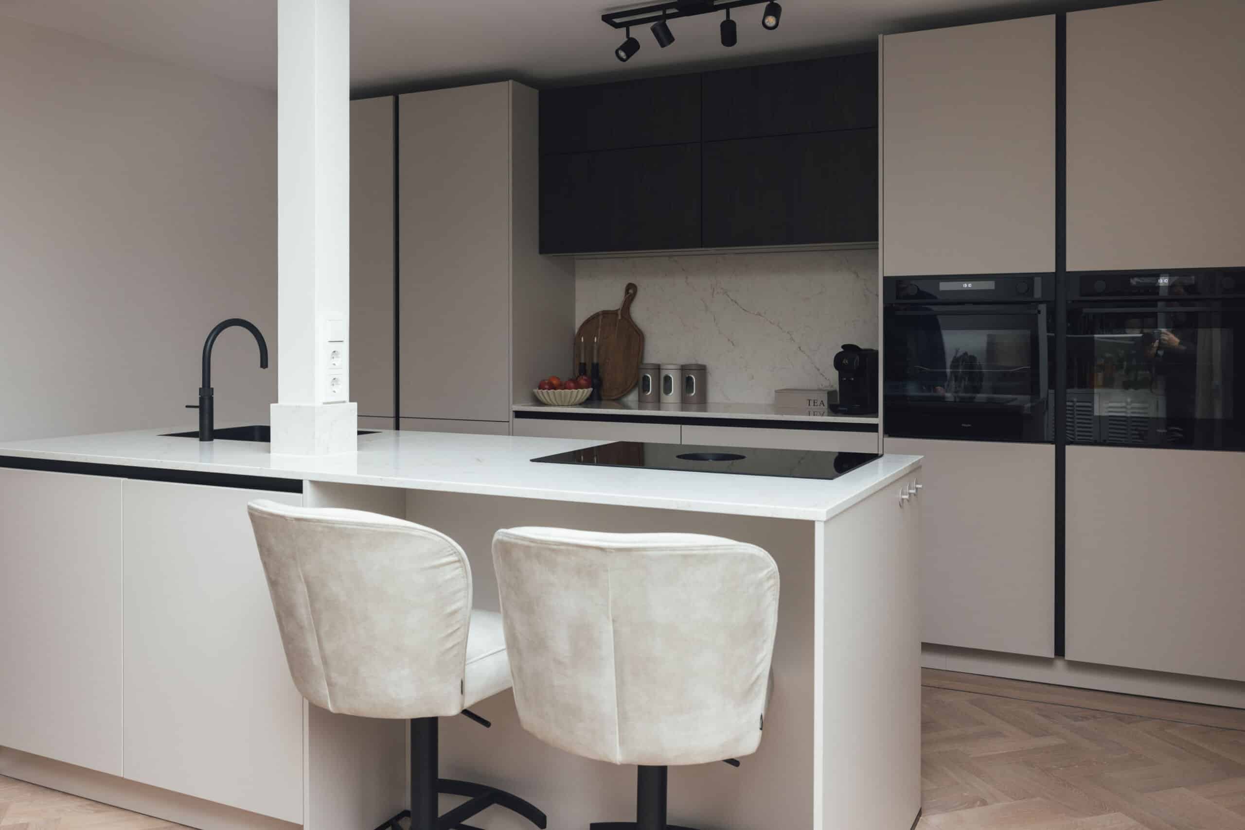 In onze showroom hebben we allerlei opstellingen, kleuren en maten. Ervaar de materialen en ontwerp samen met onze expert uw keuken.